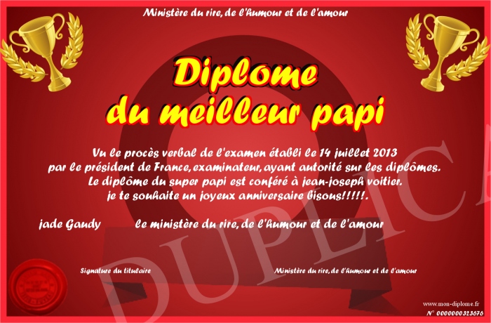 Envoyez par email votre Diplome du meilleur papi personalisé