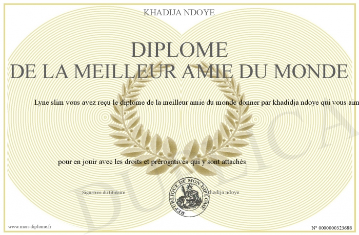 Envoyez par email votre Diplôme de la meilleur amie du monde personalisé