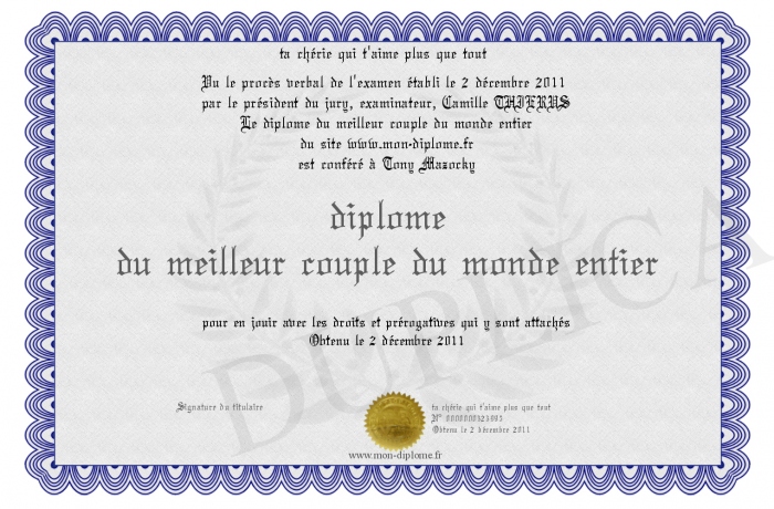 Envoyez par email votre diplôme du meilleur couple du monde entier personalisé
