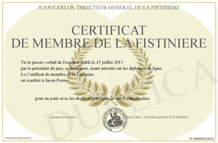 Envoyez par email votre Certificat de membre de la Fistinière personalisé