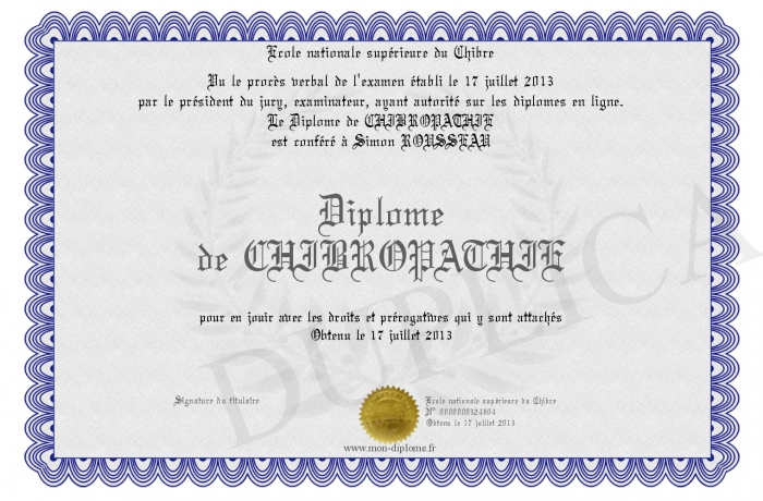 Envoyez par email votre Diplome de CHIBROPATHIE personalisé