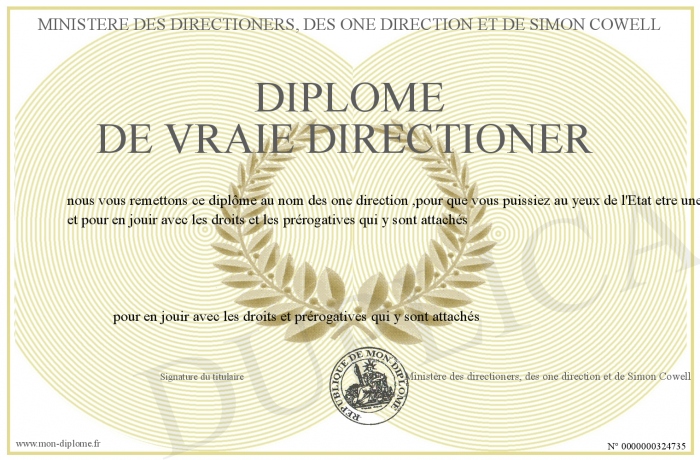 Envoyez par email votre Diplôme de vraie directioner personalisé
