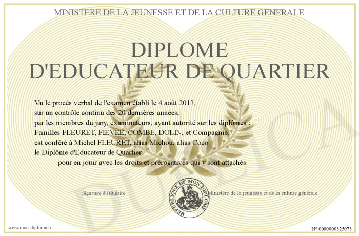 Envoyez par email votre Diplôme d'Educateur de Quartier personalisé