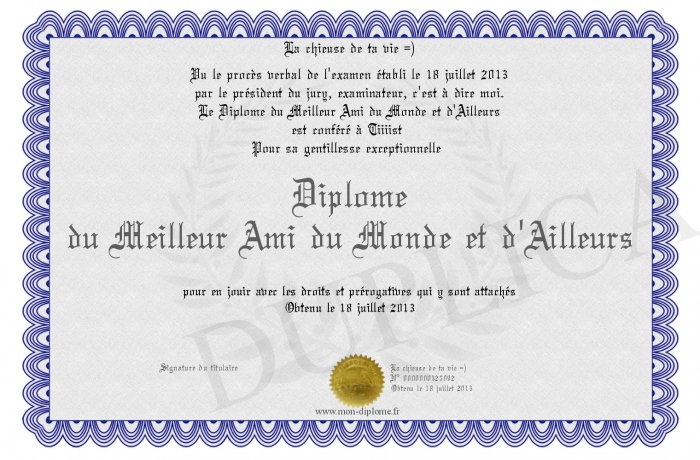 • Diplôme du Meilleur Ami du Monde et d'Ailleurs