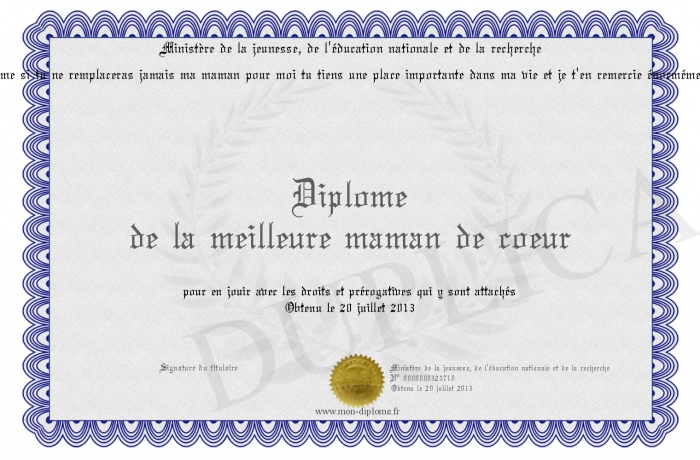 Envoyez par email votre Diplôme de la meilleure maman de coeur personalisé