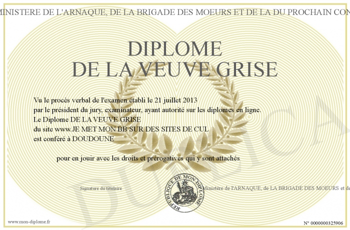 Envoyez par email votre Diplôme DE LA VEUVE GRISE personalisé