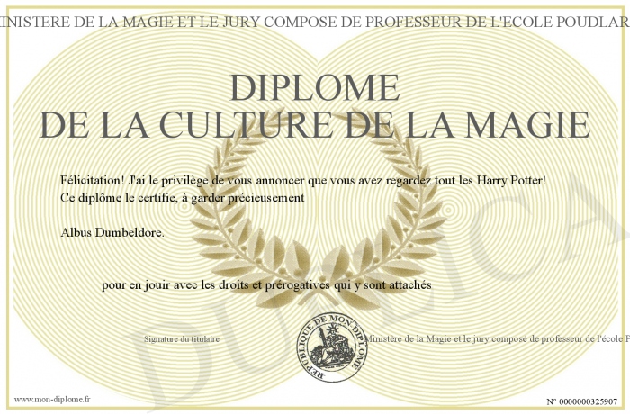 Envoyez par email votre Diplôme de la culture de la Magie personalisé