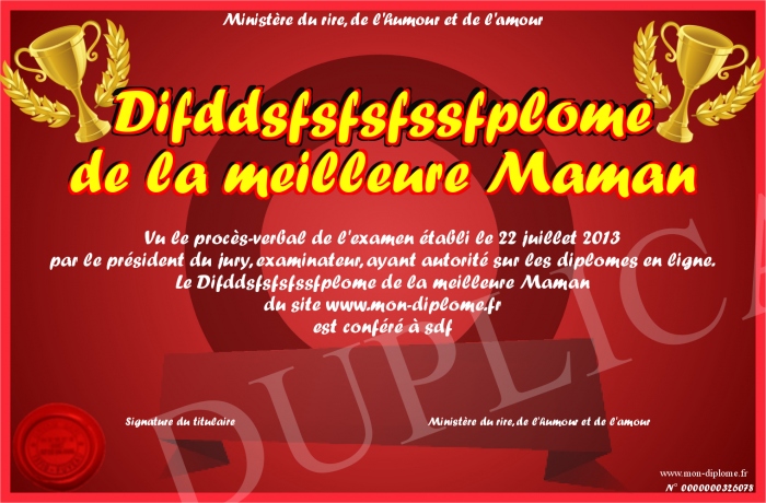 Envoyez par email votre Difddsfsfsfssfplome de la meilleure Maman personalisé