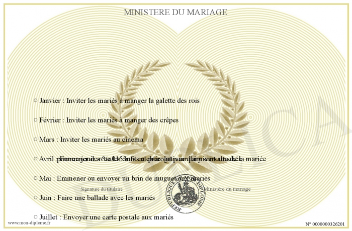 envoyé par le Ministère du mariage !