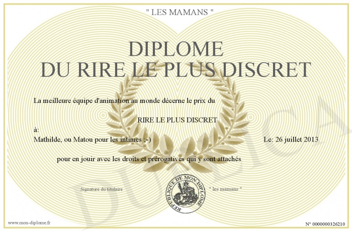 Envoyez par email votre Diplôme du rire le plus discret personalisé