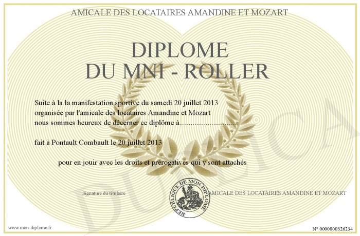 Envoyez par email votre Diplôme du Mni - Roller personalisé