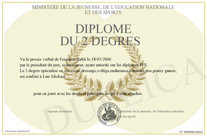Envoyez par email votre Diplôme du 2 degrés personalisé