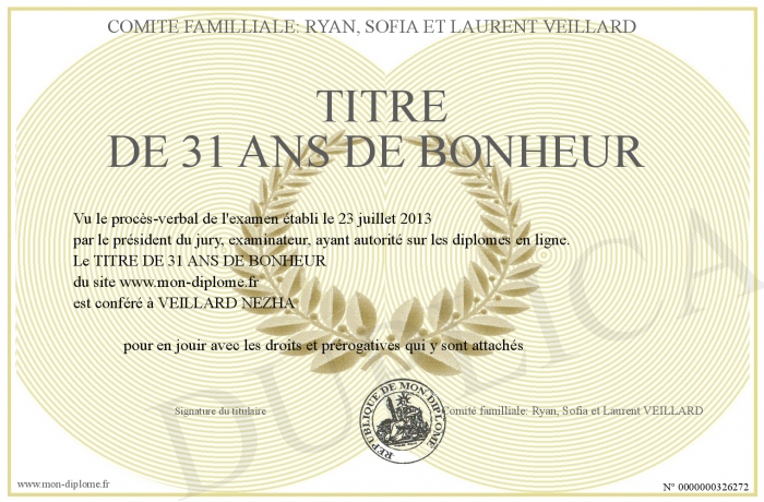 Envoyez par email votre TITRE DE 31 ANS DE BONHEUR personalisé