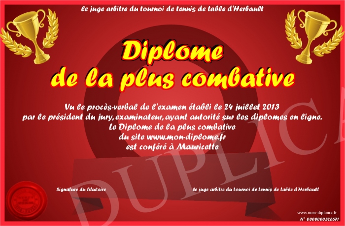 Envoyez par email votre Diplome de la plus combative personalisé