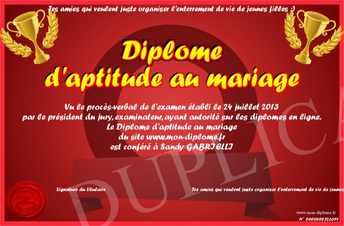 Envoyez par email votre Diplome d'aptitude au mariage personalisé