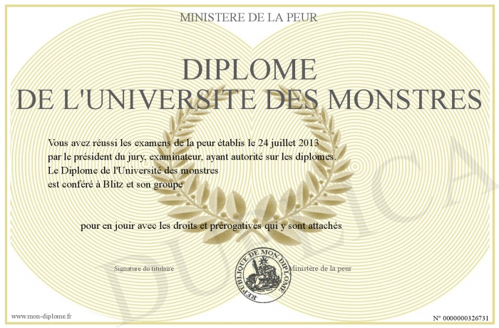 Envoyez par email votre Diplome de l'Université des monstres personalisé