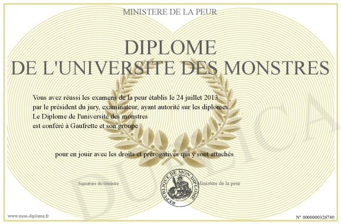 Envoyez par email votre Diplôme de l'université des monstres personalisé