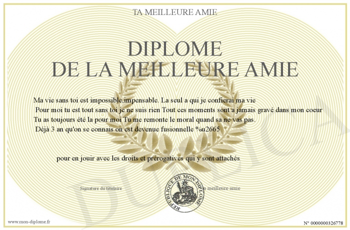 Envoyez par email votre Diplôme de la meilleure amie personalisé