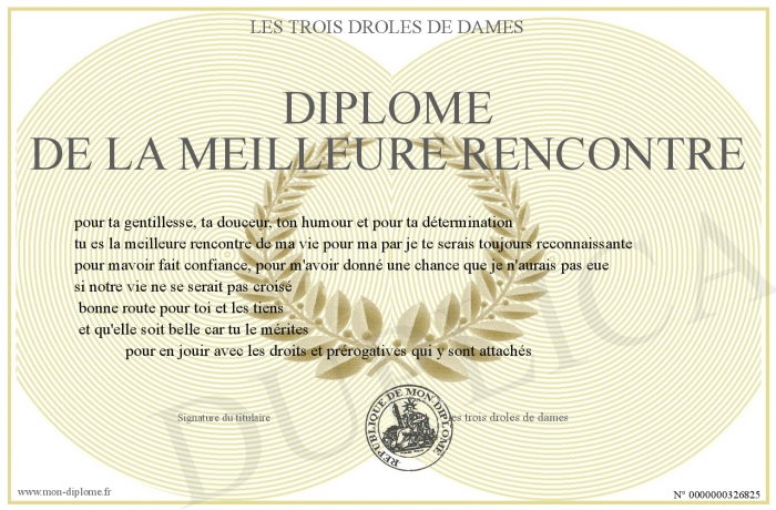 Envoyez par email votre Diplôme de la meilleure rencontre personalisé