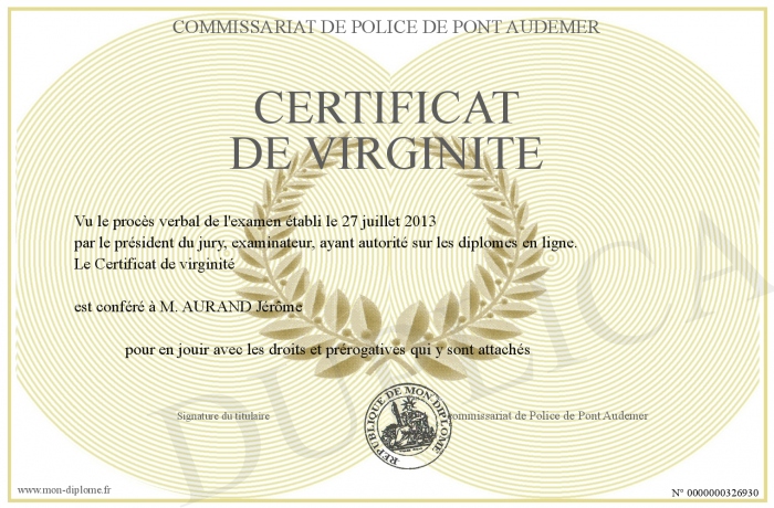 Envoyez par email votre Certificat de virginité personalisé