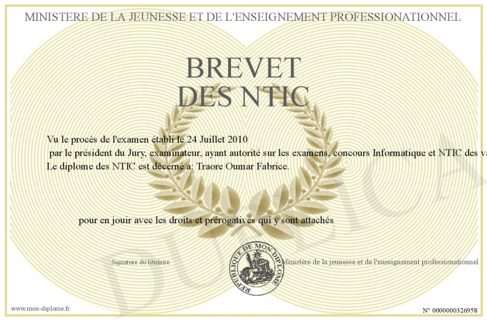 Envoyez par email votre Brevet des NTIC personalisé
