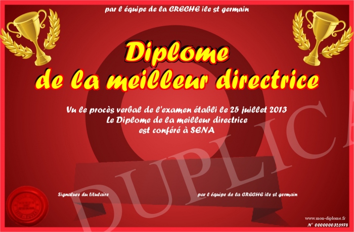 Envoyez par email votre Diplôme de la meilleur directrice personalisé