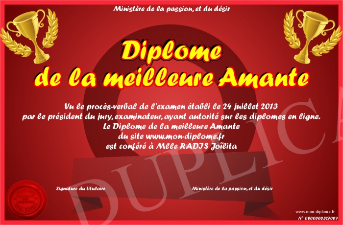 Envoyez par email votre Diplome de la meilleure Amante personalisé