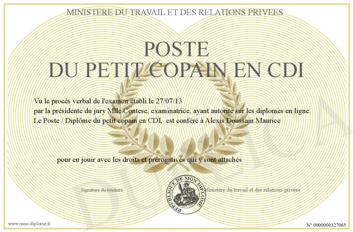 Envoyez par email votre poste du petit copain en CDI personalisé