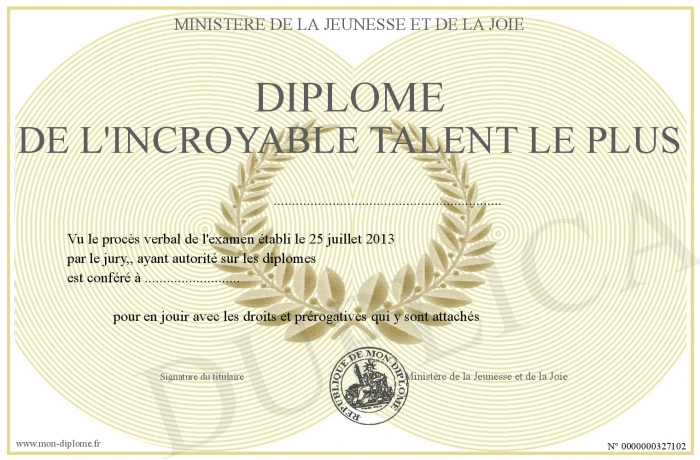 Envoyez par email votre Diplôme de l'Incroyable Talent le plus personalisé