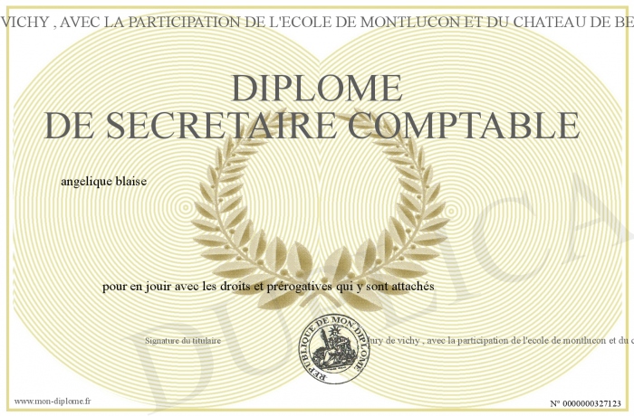 Envoyez par email votre Diplôme de secretaire comptable personalisé