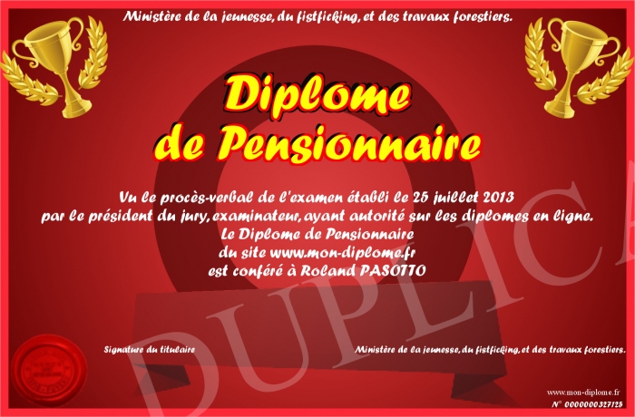 Envoyez par email votre Diplôme de Pensionnaire personalisé