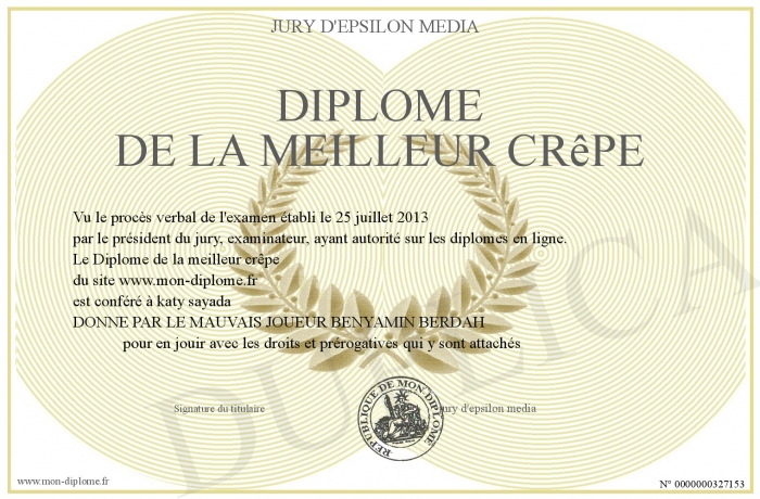 Envoyez par email votre Diplôme de la meilleur crêpe personalisé