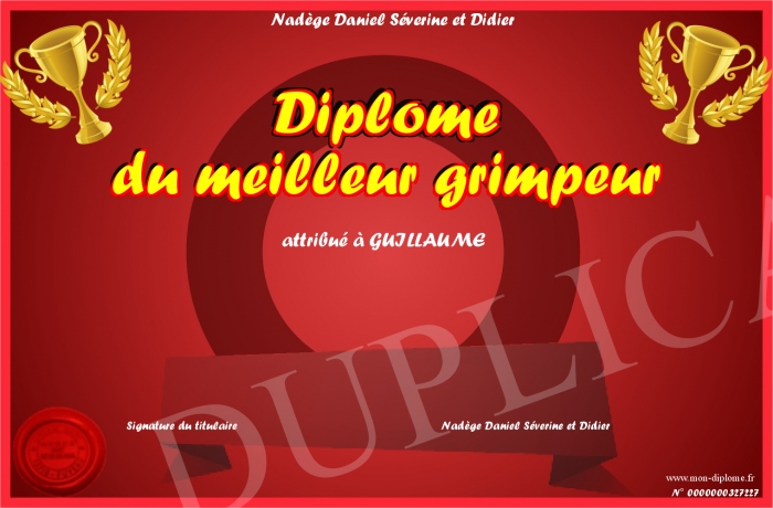 Envoyez par email votre Diplôme du meilleur grimpeur personalisé