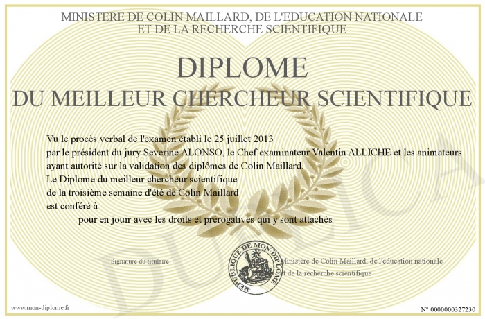 Envoyez par email votre Diplôme du meilleur chercheur scientifique personalisé