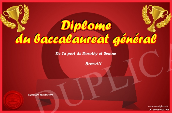 Envoyez par email votre Diplôme du baccalaureat général personalisé