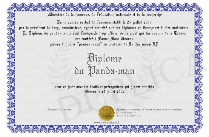 Envoyez par email votre Diplôme du Panda-man personalisé
