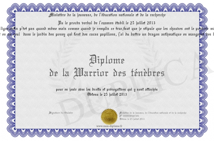 Envoyez par email votre Diplôme de la Warrior des ténèbres personalisé