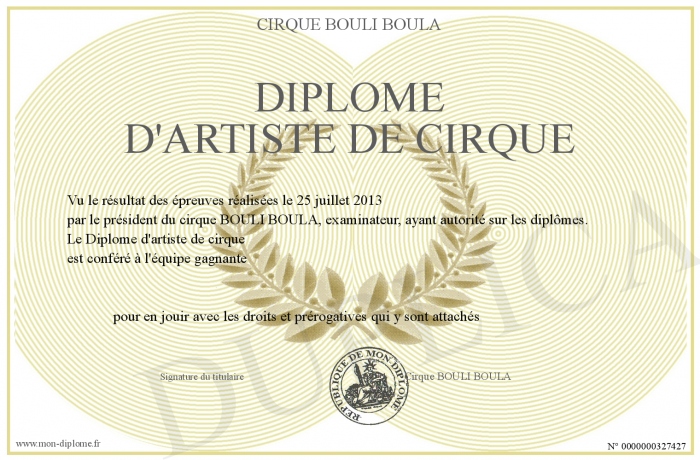 Envoyez par email votre Diplome d'artiste de cirque personalisé