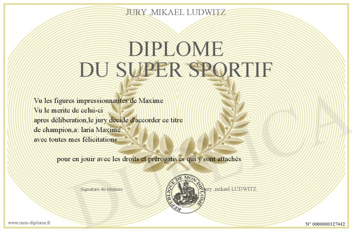 Envoyez par email votre Diplôme du super sportif personalisé