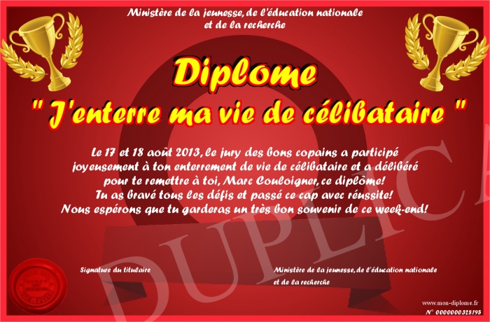Envoyez par email votre Diplôme - J'enterre ma vie de célibataire - personalisé