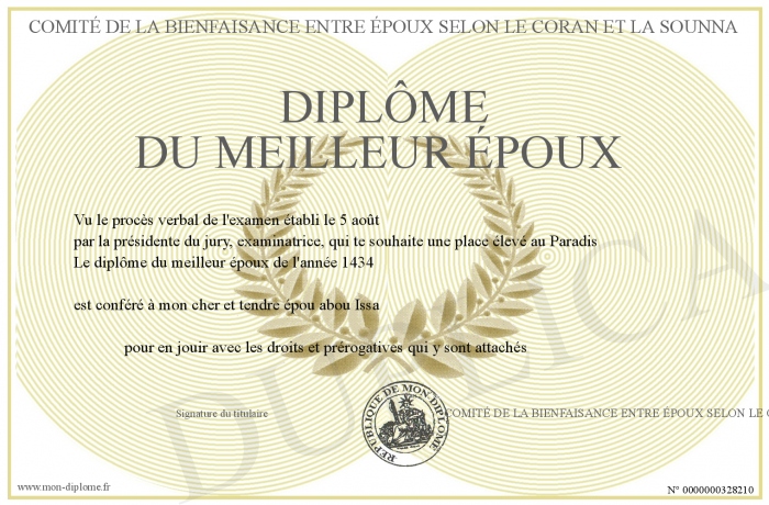 Envoyez par email votre DIPLÔME DU MEILLEUR ÉPOUX personalisé