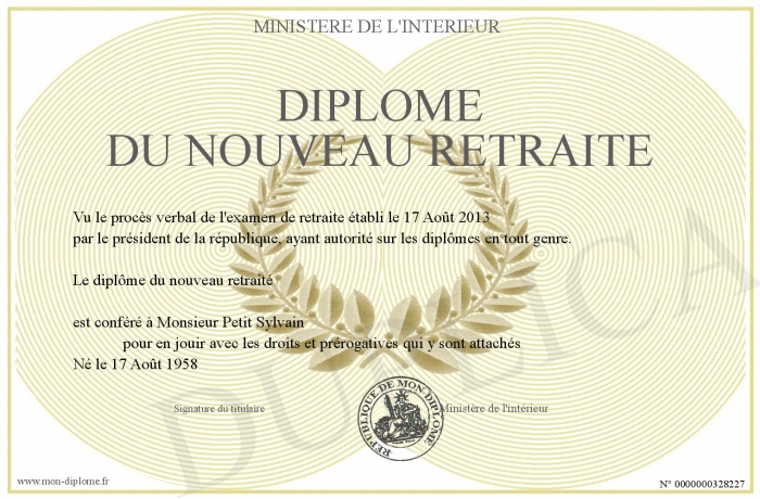 Envoyez par email votre Diplôme du Nouveau retraité personalisé