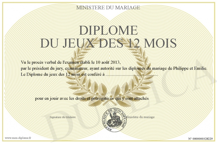 Envoyez par email votre Diplôme du jeux des 12 mois personalisé