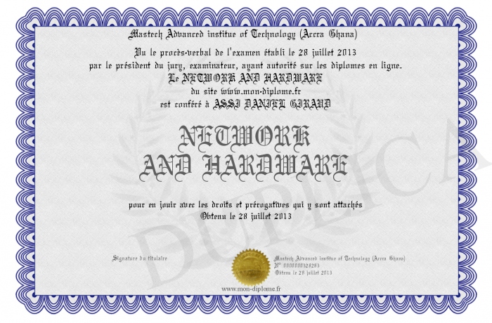 Envoyez par email votre NETWORK AND HARDWARE personalisé