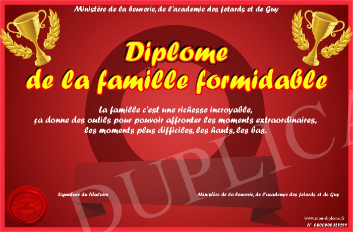 Envoyez par email votre Diplôme de la famille formidable personalisé