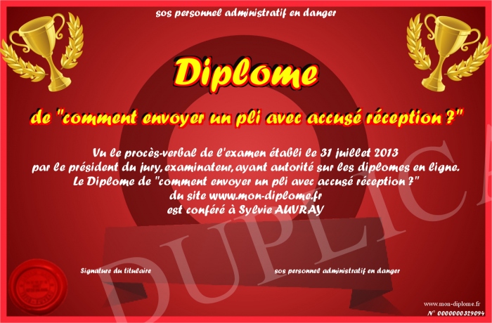 Envoyez par email votre Diplôme de -comment envoyer un pli avec accusé réception ?- personalisé
