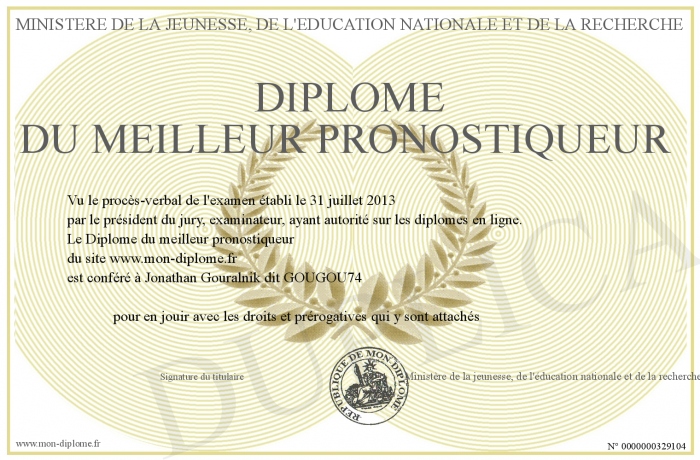 Envoyez par email votre Diplôme du meilleur pronostiqueur personalisé
