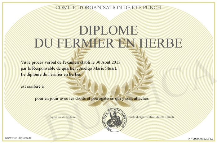 Envoyez par email votre Diplôme du fermier en herbe personalisé