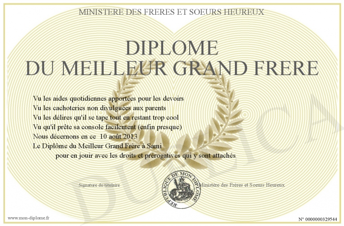 • Diplôme du meilleur Grand Frère
