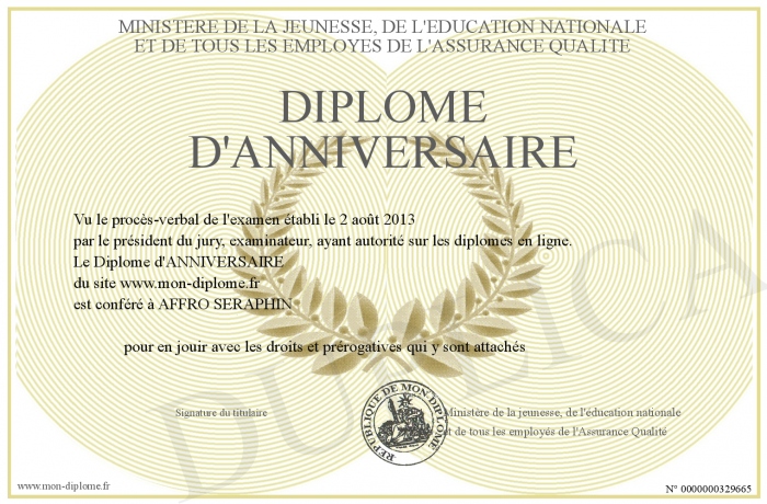 Envoyez par email votre Diplôme d'ANNIVERSAIRE personalisé